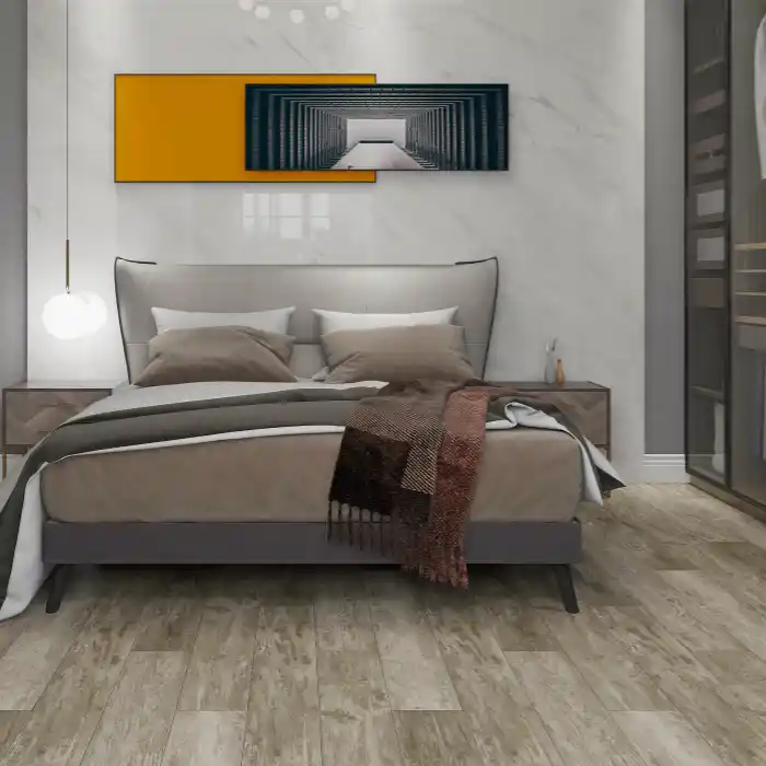 Herringbone LVT flooring is a classic in the flooring industry and a popular installation method among many customers. It uses rectangular planks arranged at 90-degree angles, creating a staggered, cross-grain pattern that effectively avoids the monotony and rigidity that can occur with large-area installations (such as in a large living room), making narrow hallways or shallow rooms appear longer and deeper. The neat lines break the monotony of the walls; this regularity breaks the dullness of the walls and gives the flooring a sense of dynamism and fluidity.